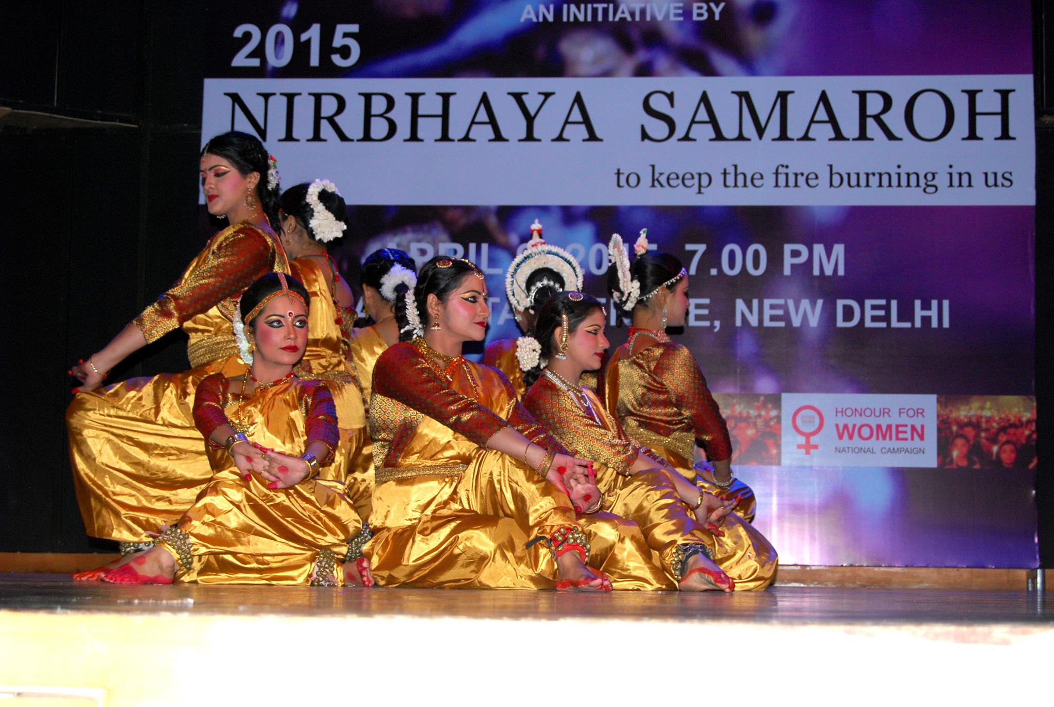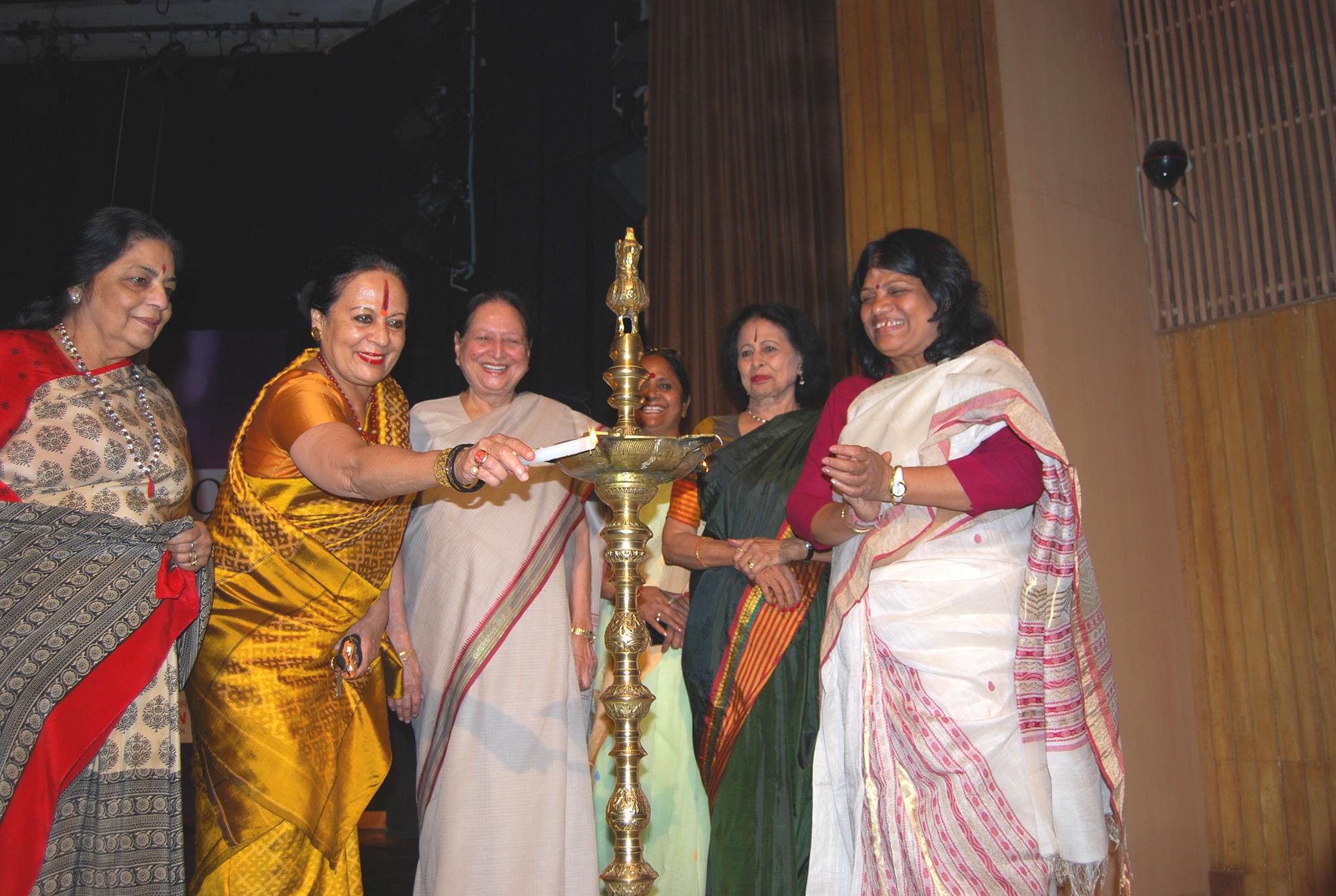 Founder of Honour for Women National Campaign Mrs. Manasi Pradhan, six-time Union Minister & Rajya Sabha MP Mrs. Mohsina Kidwai, Padma Vibhushan Dr. Sonal Mansingh, Padma Bhushan Dr. Uma Sharma, Padma Bhushan Dr. Saroja Vaidyanathan at the inauguration of 2015 Nirbhaya Samaroh at India Habitat Centre Auditorium in New Delhi on April 9, Thursday.